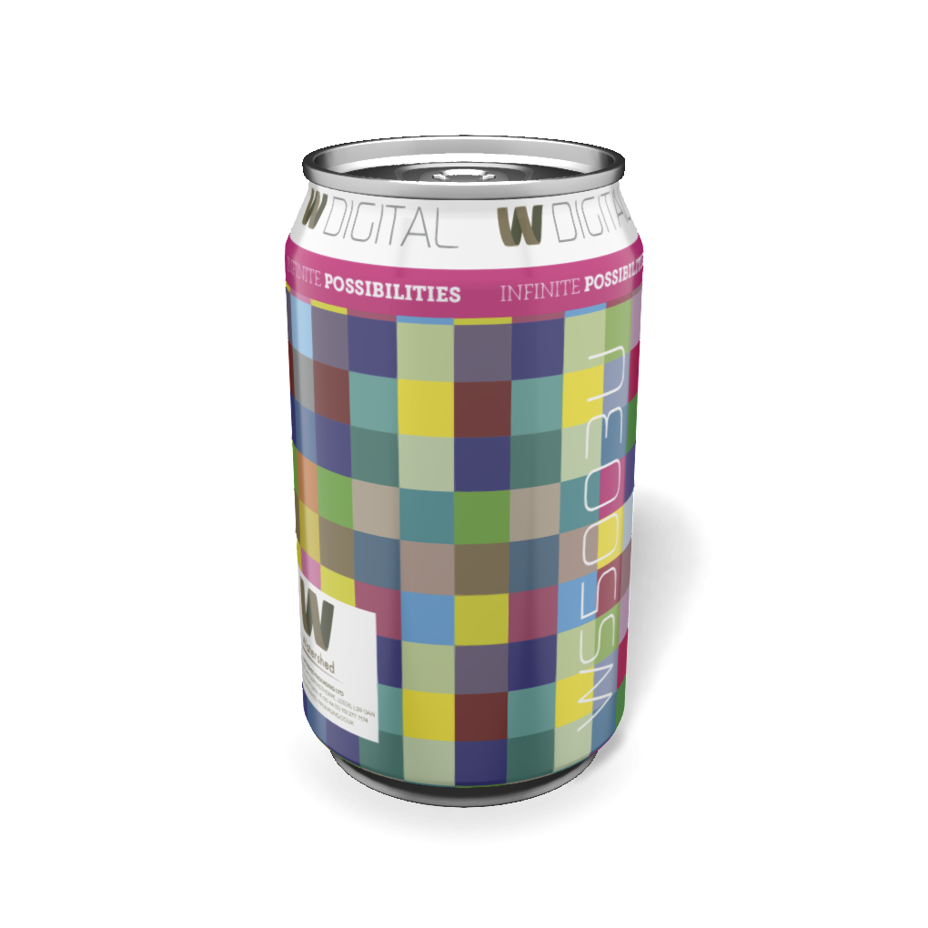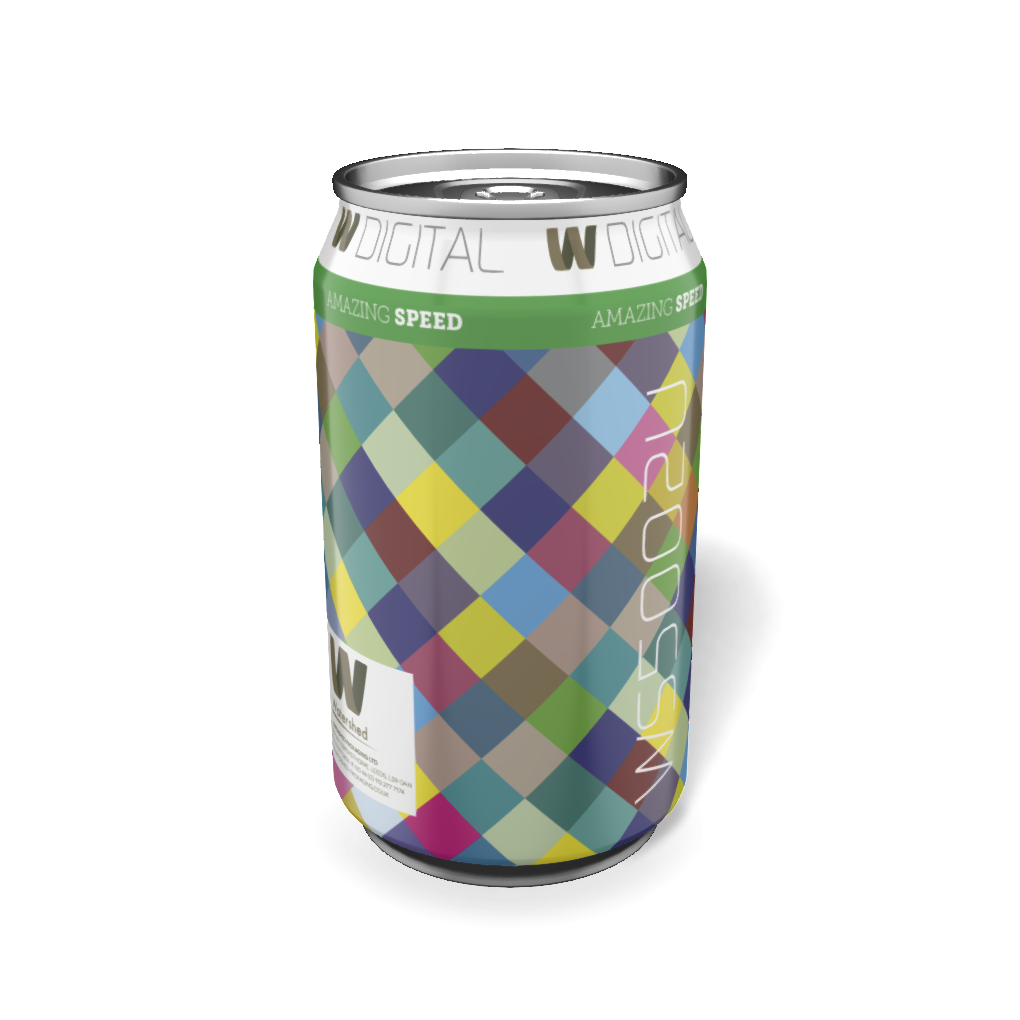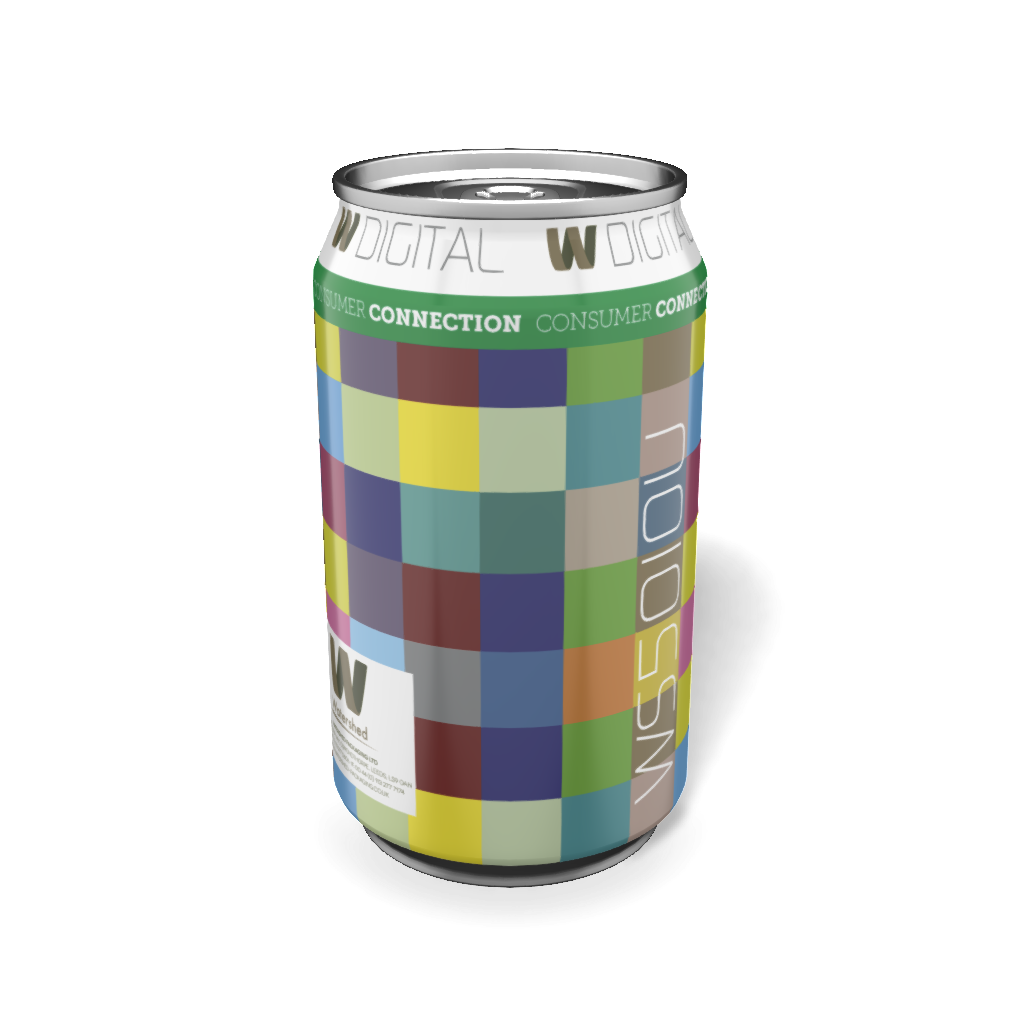 We produced unique artwork for 50000 cans, each featuring; punchy colours, thin lines, unique serial codes (writ large) and complex patterned white ink, which again was different on each individual can.